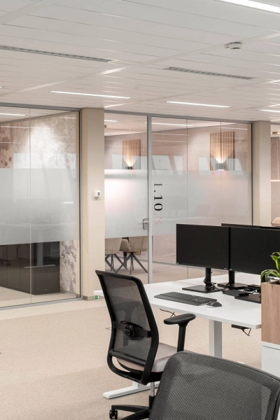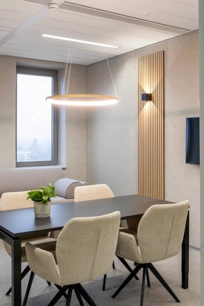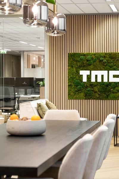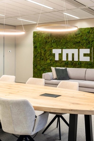Een tof kantoor met uitzicht over de hele stad. TMC Hengelo heeft een ruim kantoor van 500 m2 op de tiende verdieping van het WTC gebouw met een fantastisch uitzicht over de stad. Er is gekozen voor het behoud van wanden, waardoor er diverse werkplekken, vergaderruimtes en een boardroom gecreëerd zijn. Het belangrijkste aspect binnen het design? De wow-factor creëren, veel groen laten terugkomen en zorgen voor eenheid in de projecten met TMC.